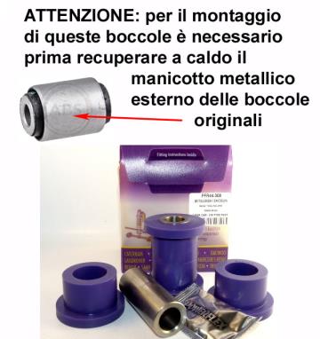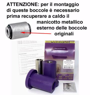 Supporti sospensione Powerflex in poliuretano, maggiore rigidità e resistenza degli originali con garanzia a vita. Per aumentare le prestazioni di guida e ridurre il consumo dei pneumatici. | |