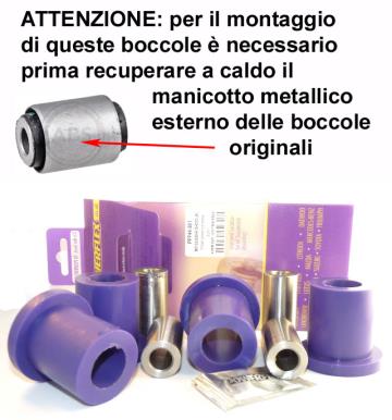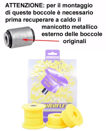 Supporti sospensione Powerflex in poliuretano, maggiore rigidità e resistenza degli originali con garanzia a vita. Per aumentare le prestazioni di guida e ridurre il consumo dei pneumatici. | |